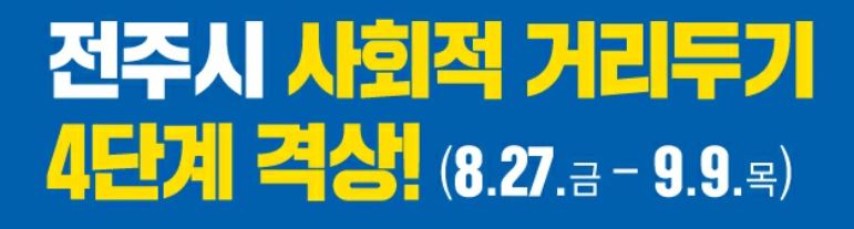 전주 사회적 거리두기 4단계 적용기간 : 2021. 8. 27(금) 0시 ~ 9. 9(목) 24시
