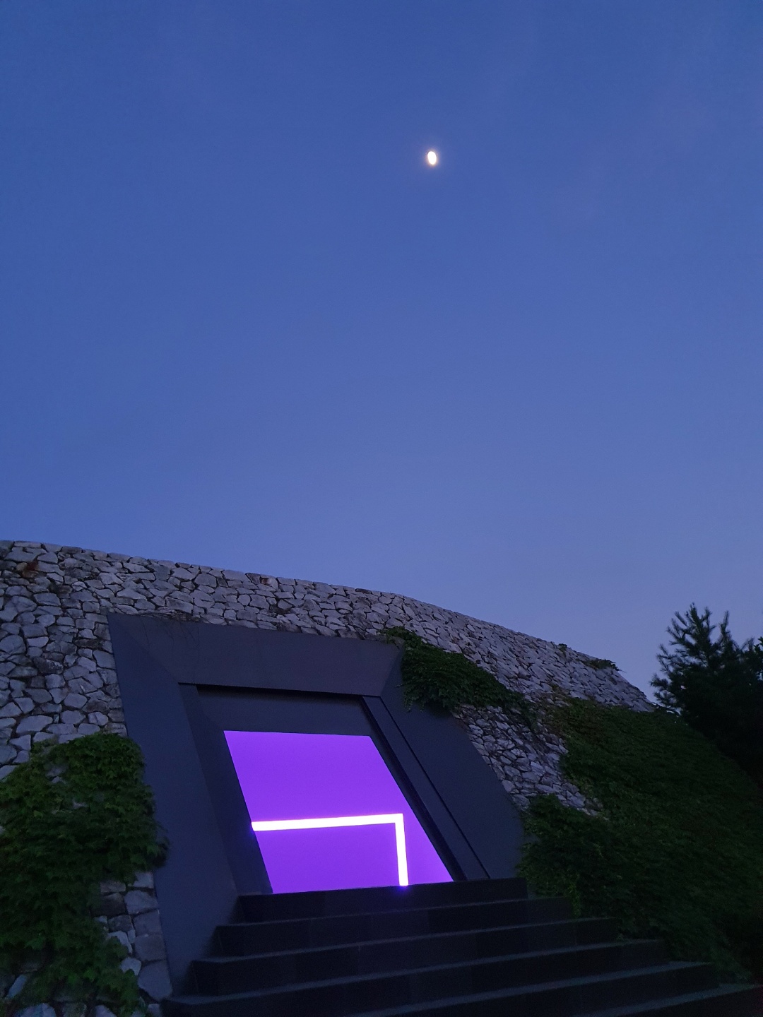 뮤지엄 산 제임스터렐관의 컬러풀나이트는 매주 금, 토 일몰시간에 맞춰 미리 예약한 사람들만 즐길 수 있는 전시인데 제임스터렐 작가의 인공조명과 자연 하늘빛의 조화를 즐길 수 있는 환상적인 빛의 향연이라고 한다. 역시나 거창한 설명에 걸맞은 환상적인 경험을 할 수 있었다. 날씨도 한몫했다.