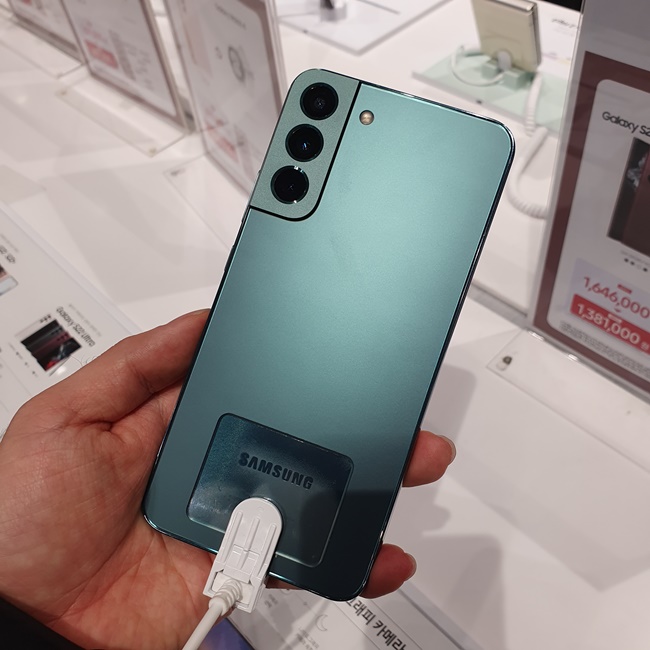 갤럭시 S22는 4가지 색깔이 있다. 블랙, 화이트, 그린, 핑크 이렇게 색상이 구성되어 있다. 전체적으로 직전에 히트를 친 갤럭시 Z플립의 색깔과 비슷한 톤이다. 내가 구경하면서 느낀점과 같이 폰을 구경하는 사람들이 하는 얘기들을 종합했을 때 다음과 같은 느낌을 받을 수 있었다.